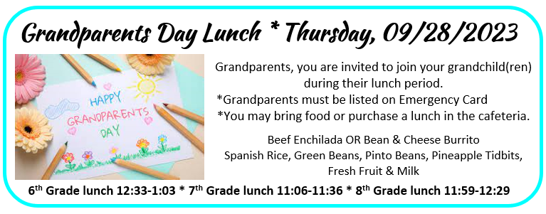 Grandparents Day Lunch, Thurs., 09/28/23